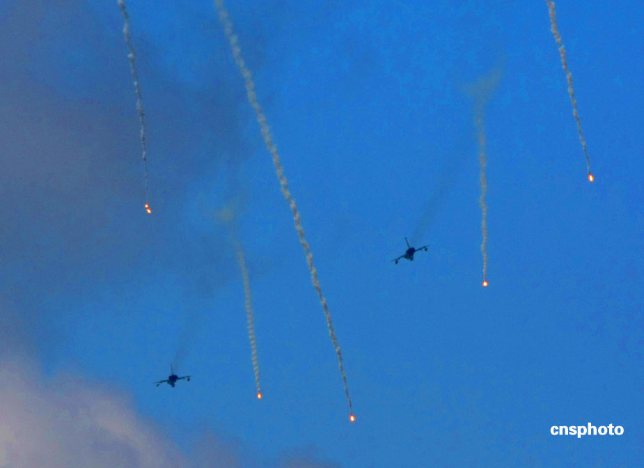 中國(guó)、俄羅斯兩軍總參謀長(zhǎng),7月23日上午到沈陽(yáng)軍區(qū)洮南合同戰(zhàn)術(shù)訓(xùn)練基地,觀看“和平使命2009”聯(lián)合反恐軍事演習(xí)。雙方以陸軍和空軍為主,中方參演部隊(duì)包括1個(gè)陸軍戰(zhàn)斗群和1個(gè)空軍戰(zhàn)斗群。俄方參演兵力包括1個(gè)陸軍加強(qiáng)摩步營(yíng)、1個(gè)空降突擊連和部分空軍兵力,雙方投入兵力兩千多人。中新社發(fā) 宋吉河 攝