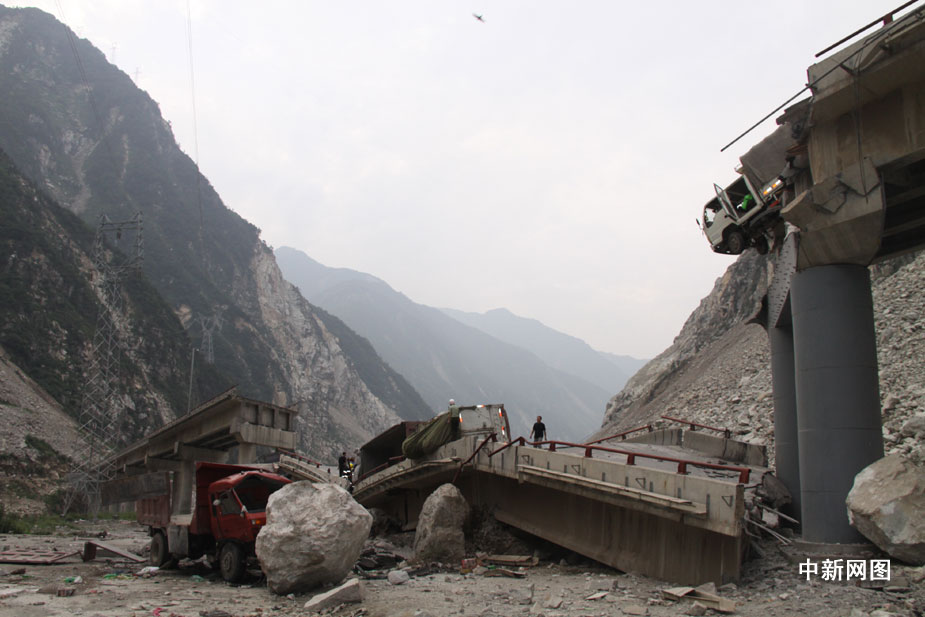 25日凌晨四點(diǎn)鐘左右,汶川縣境內(nèi)國(guó)道二一三線徹底關(guān)大橋被山上飛下來(lái)的巨石砸斷,造成交通中斷。
