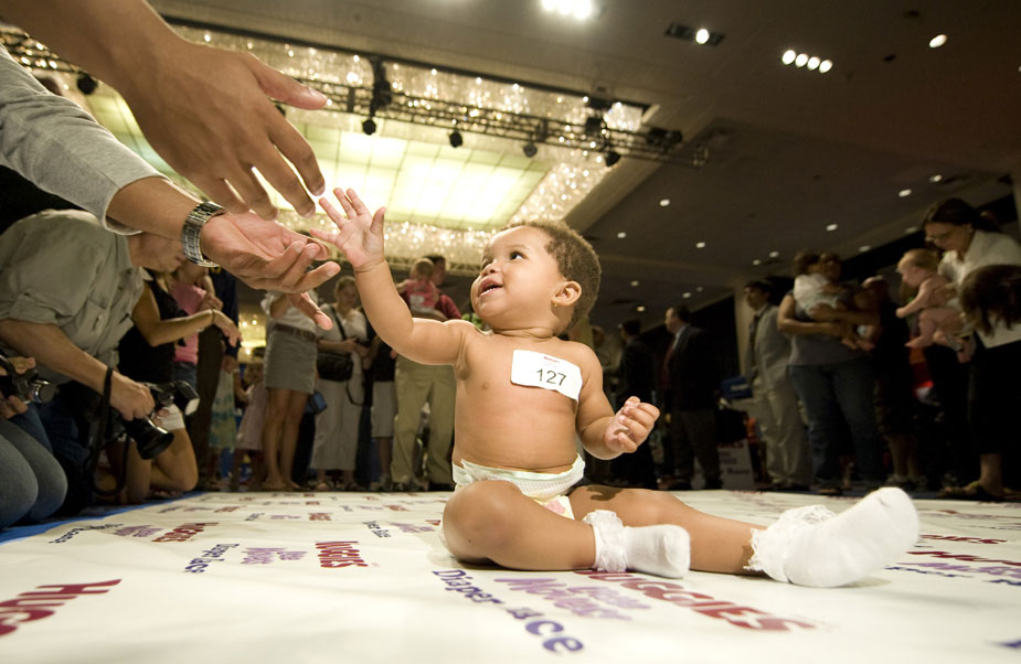 當?shù)貢r間7月24日,美國紐約舉行了一場趣味橫生的小寶寶爬行大賽,獲得冠軍的小寶寶贏得了一年免費的紙尿褲。