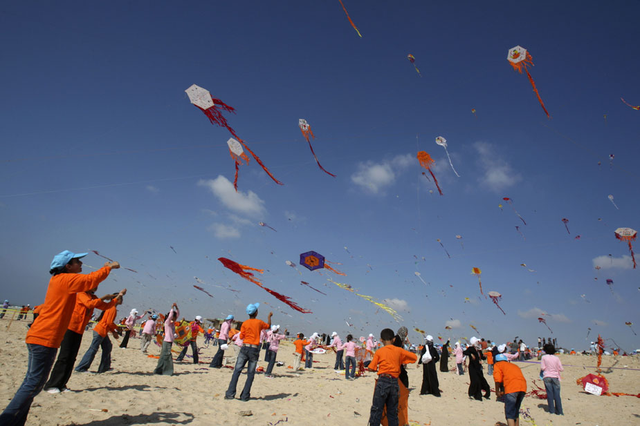 7月30日,加沙地帶的6000名巴勒斯坦兒童共同在加沙北部的海灘上放飛了3000多只五顏六色的風(fēng)箏,打破了同時放飛最多只風(fēng)箏的吉尼斯世界紀(jì)錄。