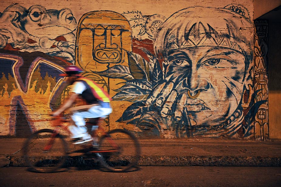 近日,哥倫比亞考卡山谷省卡利市的年輕人用涂料在墻上涂鴉,表達他們對世界的看法。