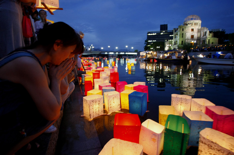 8月6日,日本民眾在廣島原子彈爆炸遺址前燃放河燈,紀(jì)念原子彈爆炸64周年的遇難者。