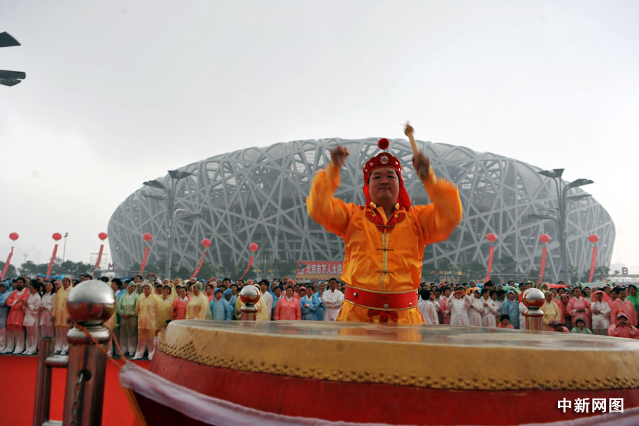 8月8日,全國首個“全民健身日”北京主會場啟動儀式上,三萬多群眾進行太極拳展示活動,在世界吉尼斯總部認證官員的見證下成功打破世界紀錄。中新網(wǎng)記者 金碩 攝