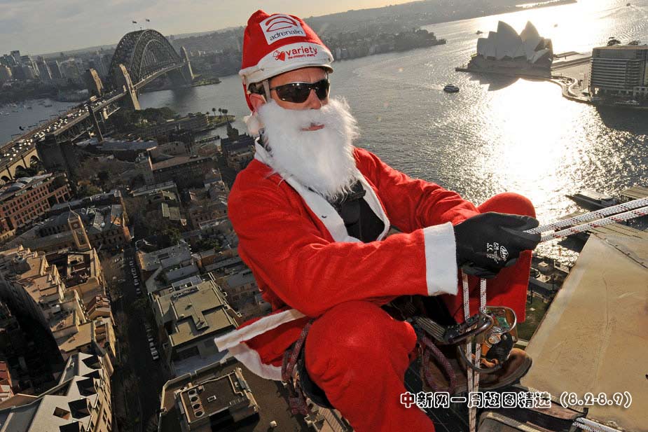 8月5日,澳大利亞5名男子身著圣誕老人服飾從悉尼歌劇院旁一高層酒店樓頂“從天而降”。點擊觀看詳細(xì)內(nèi)容