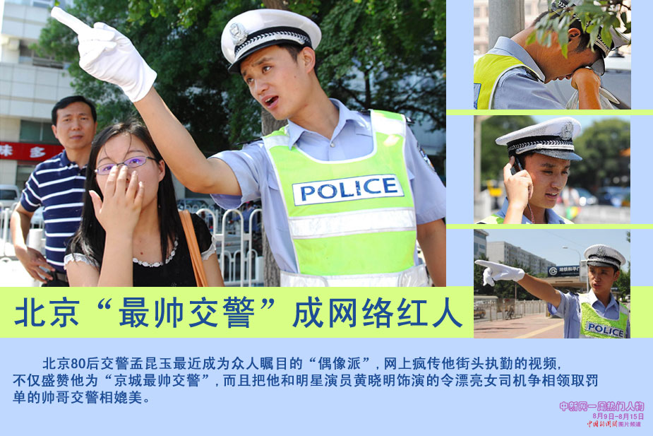 中新網(wǎng)本周熱點人物之最帥交警——1981年出生的孟昆玉因兢兢業(yè)業(yè)地在崗位上奉獻八年,公正執(zhí)法、悉心為民服務。被網(wǎng)友捧為“北京最帥交警”。