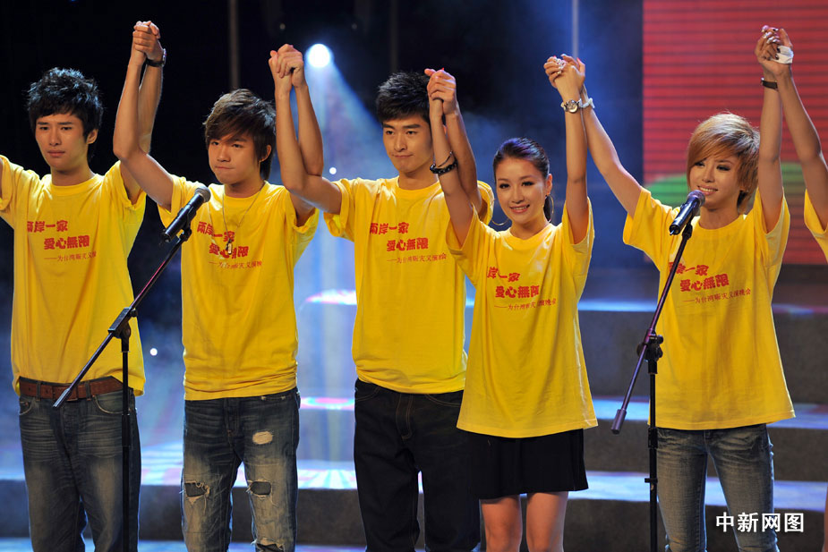 8月22日晚,北京舉行“兩岸一家 愛心無限”為臺灣同胞賑災義演晚會,大陸和臺灣演藝界明星登臺為臺灣災區(qū)同胞共獻愛心,晚會臨近結束時共收到各界捐款3000多萬元。中新網記者 金碩 攝