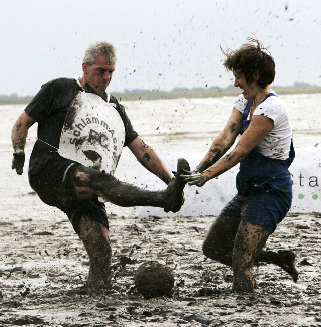 當?shù)貢r間8月30日,德國北部海邊小鎮(zhèn)Brunsbuettel的泥灘上進行一場別開生面的泥地足球賽。男女“球員”混合在一起,泥地中盡情撒野,享受著不一樣的樂趣。