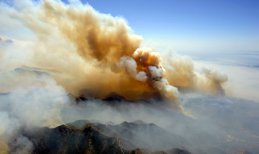 從遠(yuǎn)處看,從火災(zāi)現(xiàn)場(chǎng)升起的煙塵好像核彈爆炸產(chǎn)生的“蘑菇云”一般。Kevork Djansezian/CFP