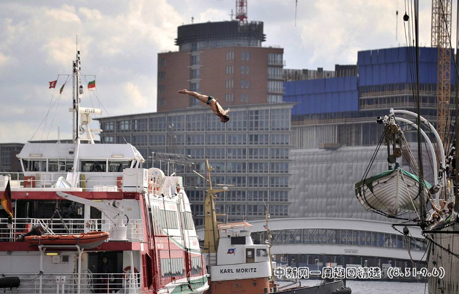 當(dāng)?shù)貢r(shí)間8月29日,世界懸崖跳水系列賽在德國(guó)漢堡舉行。圖片來源:中國(guó)新聞網(wǎng)