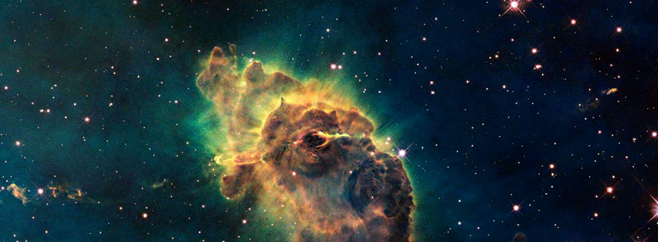 圖為哈勃望遠(yuǎn)鏡上的相機拍攝的船底座星云中的由炙熱的氣體和塵埃組成的“創(chuàng)造之柱”。船底座星云位于距離地球7500光年的船底星座,是孕育恒星的地方。