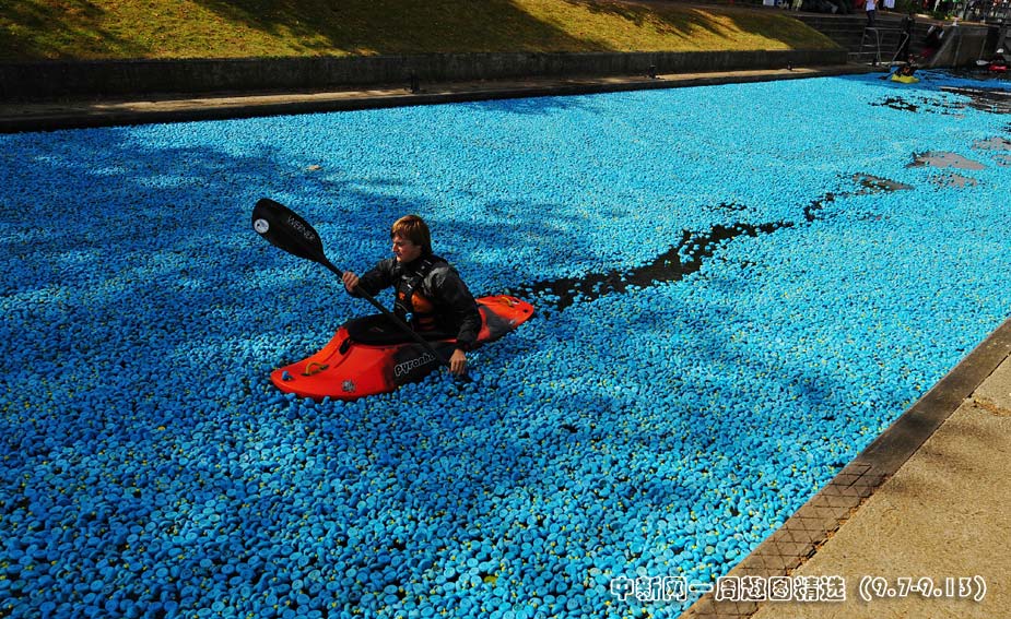 9月6日,英國倫敦當日舉行了一場“大英賽鴨活動”。此次活動中,大約有20.5萬只藍色橡膠鴨子漂浮在泰晤士河上,這也打破了現(xiàn)有的20萬只鴨子漂流的世界紀錄。圖片來源:中國新聞網(wǎng)