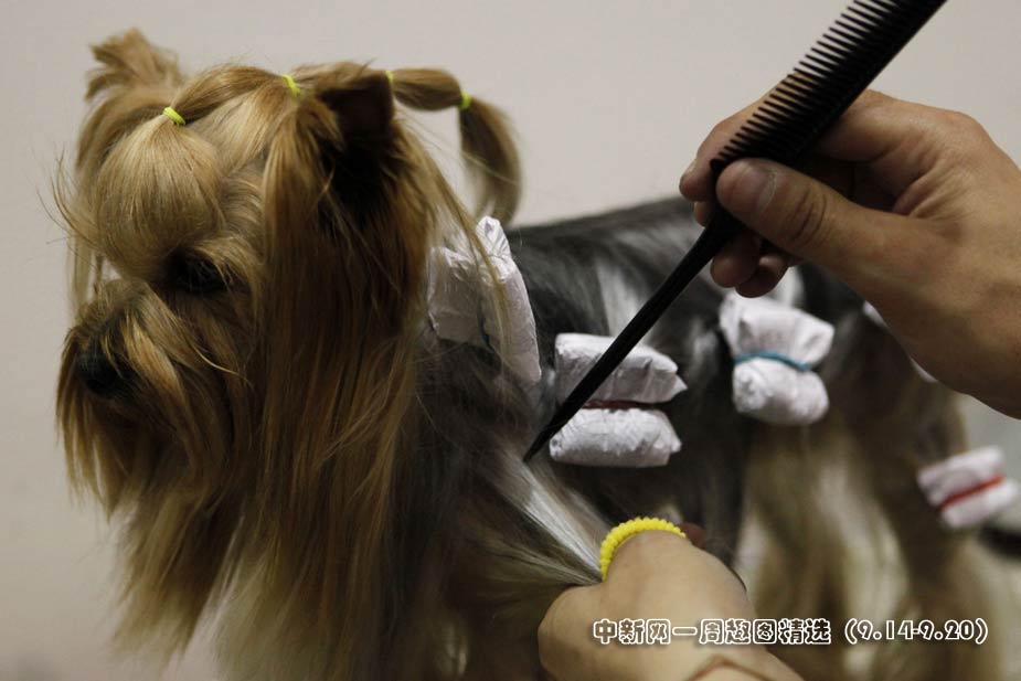 當?shù)貢r間9月17日,在墨西哥首都墨西哥城舉行了2009國際小狗競選大賽。眾多參賽的小狗紛紛“梳妝打扮”準備參加國際小狗競選。圖片來源:中國新聞網(wǎng)