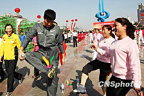 劉翔興高采烈踢毽子