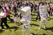 數(shù)百學(xué)生齊跳機(jī)器人舞