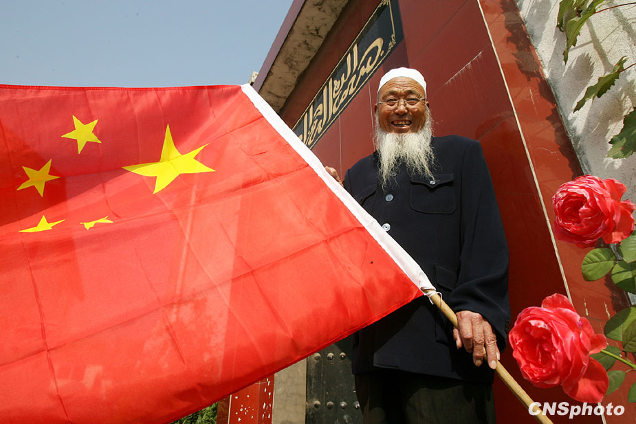 9月下旬,河南省濟源市廟后居委會73歲的回族老漢閃登平在自家門口懸掛國旗,喜迎國慶佳節(jié)。 中新社發(fā) 衛(wèi)建波 攝