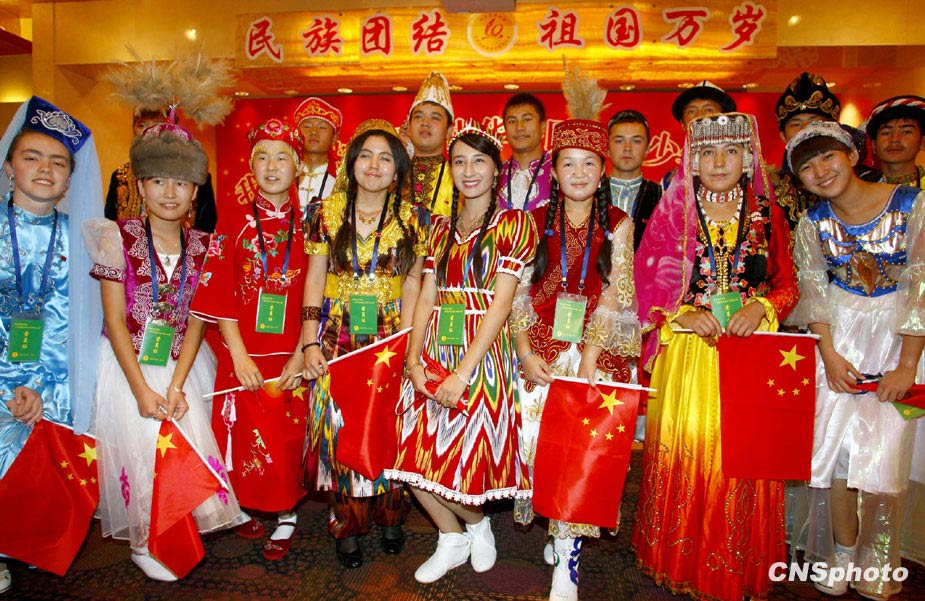 9月24日晚,“我愛我的祖國——中華各民族青少年同心營”在北京開營。本次同心營活動從全國56個民族中挑選男女各一名優(yōu)秀學生代表共計112人進京參加,在北京期間,營員們不僅將與北京少先隊員一起繡國旗,國慶當天,他們將穿上本民族的服飾,組成“國旗禮儀隊”,簇擁在天安門廣場國旗旗桿下,代表56個民族的青少年共迎國旗。中新社發(fā) 鄭雄增 攝