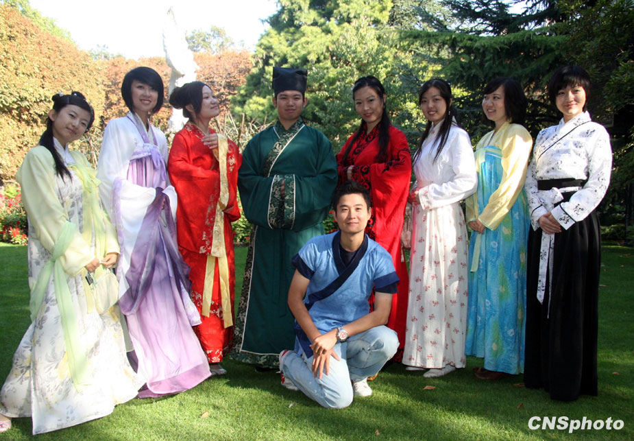 當(dāng)?shù)貢r間9月27日,來自法國、英國、德國和荷蘭的20多名中國留學(xué)生會聚巴黎盧森堡公園,換上嶄新的漢服,然后列隊向巴黎圣母院、埃菲爾鐵塔、盧浮宮和香榭麗舍大道等法國著名景點出發(fā)。他們以漢服巡游這種特殊方式宣傳中國文化,迎接新中國六十華誕的到來。 中新社發(fā) 吳衛(wèi)中 攝