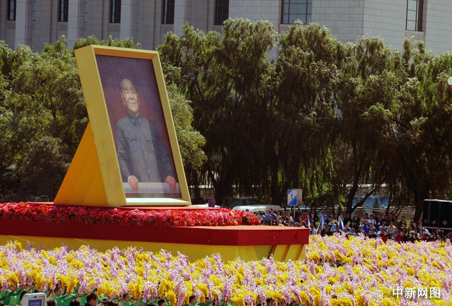 圖為鄧小平畫像彩車。