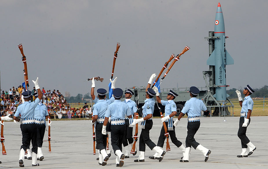 10月6日,印度空軍在新德里郊區(qū)的加濟(jì)阿巴德地區(qū)進(jìn)行了精彩的飛行表演。這次飛行表演是為了迎接印度空軍建軍77周年慶典舉行的彩排式。圖片來(lái)源:中國(guó)新聞網(wǎng)
