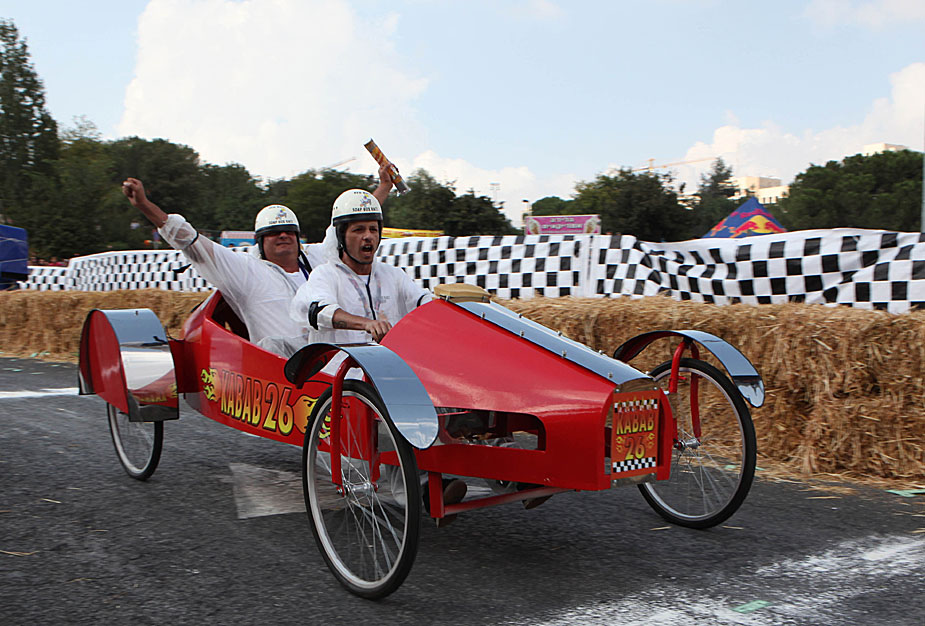50輛“肥皂盒車”10月7日參加了耶路撒冷舉行的“肥皂盒車”趣味競賽。賽道設(shè)置在市中心一條大街的一段斜坡上,比賽者駕駛各種千奇百怪的賽車從起點(diǎn)一路滑下。圖片來源:中國新聞網(wǎng)