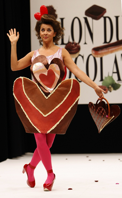 10月13日,第15屆法國巴黎巧克力展開幕,眾多明星身著巧克力服飾亮相。圖片來源:中國新聞網(wǎng)