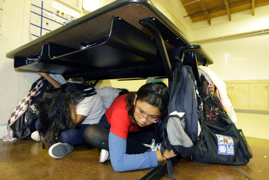 當?shù)貢r間10月15日,超過一千萬加州居民參加了美國有史以來最大地震演習,以紀念舊金山大地震二十周年。圖片來源:中國新聞網(wǎng)
