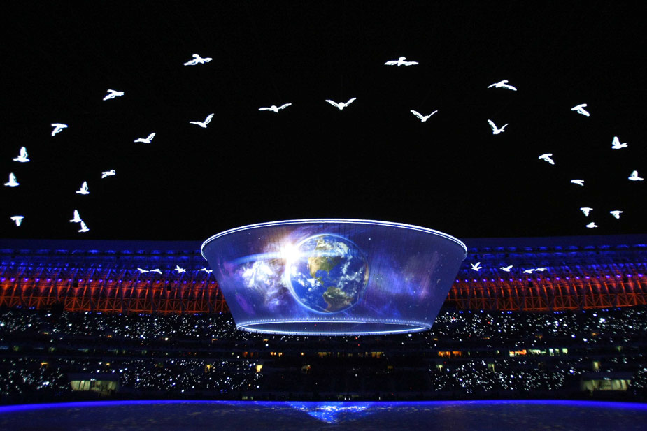 十月十六日晚,中華人民共和國(guó)第十一屆運(yùn)動(dòng)會(huì)在山東濟(jì)南奧體中心隆重開(kāi)幕。圖片來(lái)源:中國(guó)新聞網(wǎng)