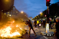 法國(guó)農(nóng)民放火封道