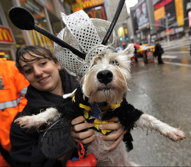 10月18日,在美國(guó)紐約時(shí)報(bào)廣場(chǎng),眾多小狗在此參加第5屆年度狗狗化妝舞會(huì)表演。主辦方稱,這一活動(dòng)的目的在于喚起人們對(duì)無家可歸和遭遺棄動(dòng)物的關(guān)注。