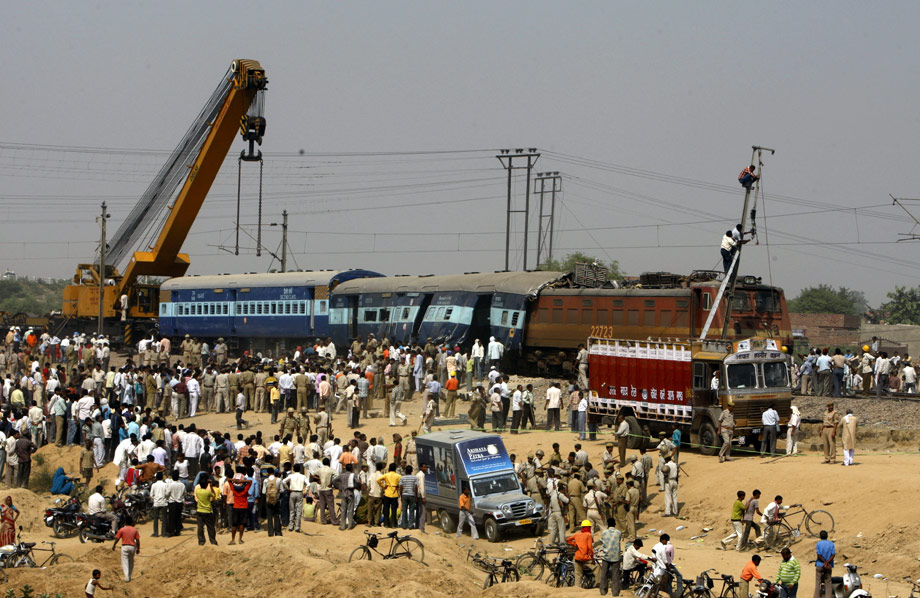 印度北方邦21日凌晨發(fā)生兩列火車相撞事故, 一輛來自西南部果阿的快運列車在馬圖拉附近與一列來自西部拉賈斯坦邦梅瓦爾的快運列車相撞,造成15人死亡。圖為事故現(xiàn)場。來源:中國新聞網(wǎng)