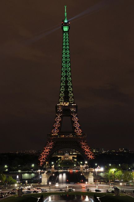 10月22日,法國首都巴黎埃菲爾鐵塔亮起絢麗的燈光,慶祝建成120周年。圖片來源:中國新聞網(wǎng)