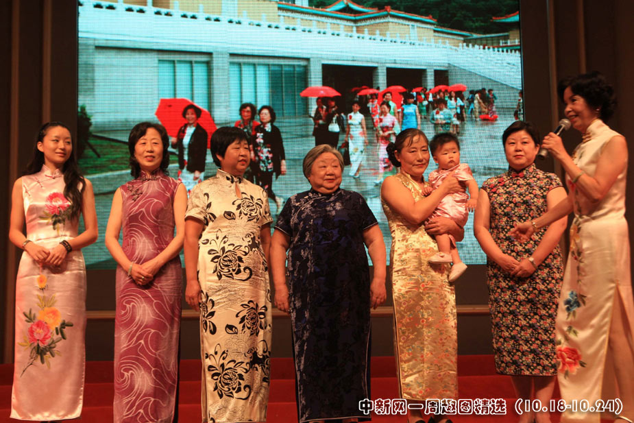 10月22日,上海一家庭七位女性,四代同堂登臺演繹旗袍魅力,其中包括一歲女孩和七十七歲阿婆,成為當日《旗袍,向世博走來》大型匯報演示中最引人注目的一幕。中新社發(fā) 潘索菲 攝 >>點擊觀看詳細內(nèi)容