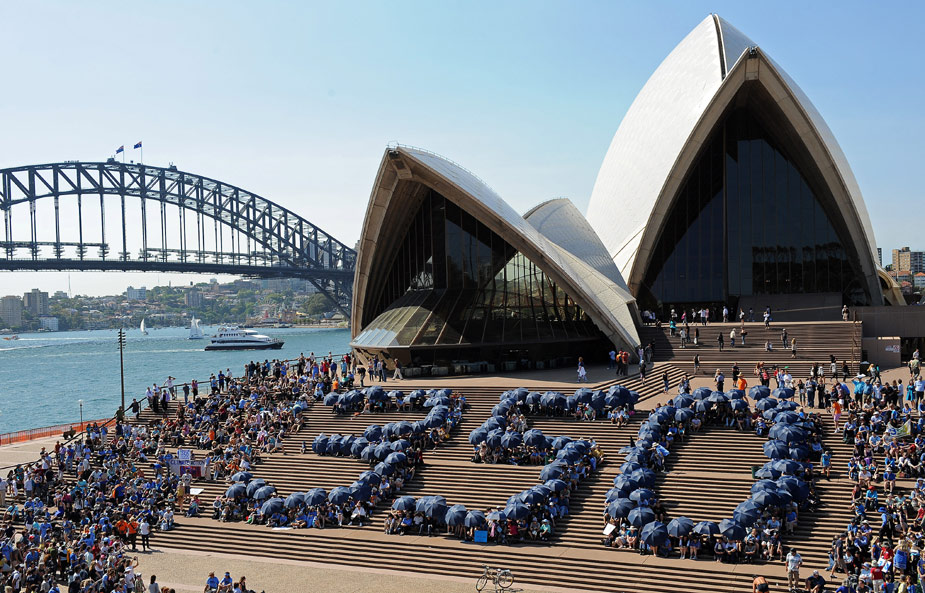 2009年10月24日,當(dāng)日是350全球應(yīng)對(duì)氣候變化行動(dòng)日,世界各地的民眾紛紛用自己的方式來(lái)表示對(duì)全球氣候變化的關(guān)注和擔(dān)憂。圖為澳大利亞民眾組織活動(dòng)。
