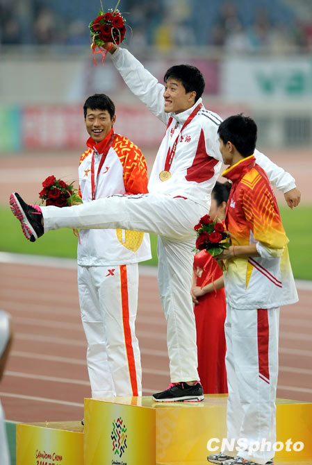 10月25日,在全運會田徑男子110米欄決賽中,上海代表團選手、“中國飛人”劉翔以13秒34的成績勇奪冠軍,同時也成就了其全運會該項目三連冠的偉業(yè)。