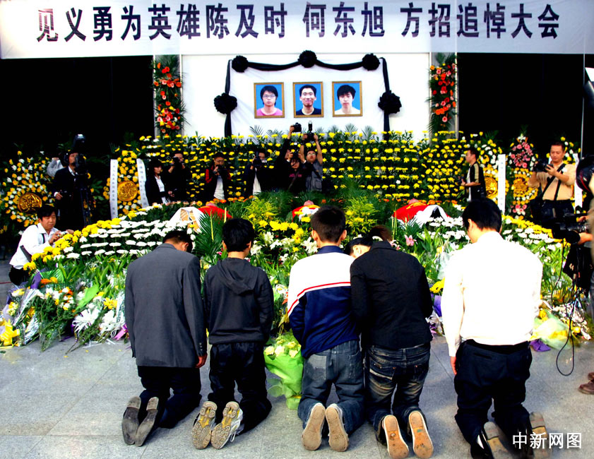 跪拜三位英雄大學(xué)生。曾尉 攝