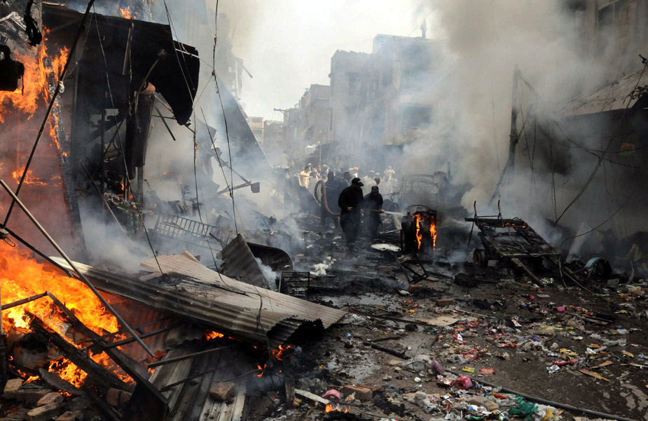 10月28日,巴基斯坦西北部城市白沙瓦一個(gè)人口密集的集市遭汽車炸彈襲擊。圖片來源:中國新聞網(wǎng)
