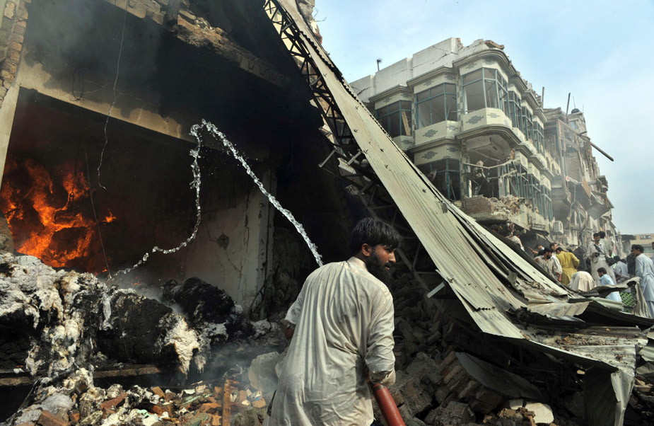 10月28日,巴基斯坦西北部城市白沙瓦一個(gè)人口密集的集市遭汽車(chē)炸彈襲擊。圖片來(lái)源:中國(guó)新聞網(wǎng)