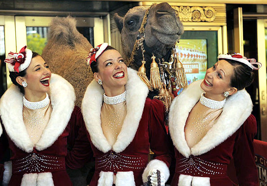10月29日,火箭女郎舞蹈團(tuán)的姑娘們?cè)诿绹?guó)紐約廣播城音樂廳與眾多動(dòng)物明星合影,準(zhǔn)備在圣誕秀上亮相。圖片來源:中國(guó)新聞網(wǎng)