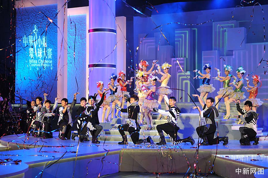 10月31日晚,“2009中華小姐環(huán)球大賽”總決賽上,12名入圍總決賽的佳麗身著迷你裙大秀性感爵士舞。中新網(wǎng)記者 金碩 攝