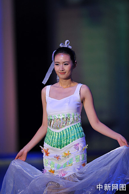 10月31日晚,“2009中華小姐環(huán)球大賽”總決賽上,12名入圍總決賽的佳麗身著各式服裝展現(xiàn)曼妙身姿,此外大賽還設(shè)計(jì)了一套“廢品服裝”呼吁環(huán)境保護(hù)。中新網(wǎng)記者 金碩 攝