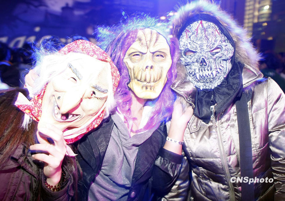 10月31日是西方的“萬圣節(jié)”,世界各地的群眾穿著奇異的服飾、打扮鬼魅的造型迎接“鬼節(jié)”的到來。在北京青年們聚集在一起狂歡,迎接萬圣節(jié)。中新社發(fā) 楊可佳 攝