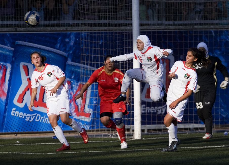 周一(26日),約旦和巴勒斯坦兩國女子足球隊進(jìn)行了一場友誼賽。 來源:中國新聞網(wǎng)