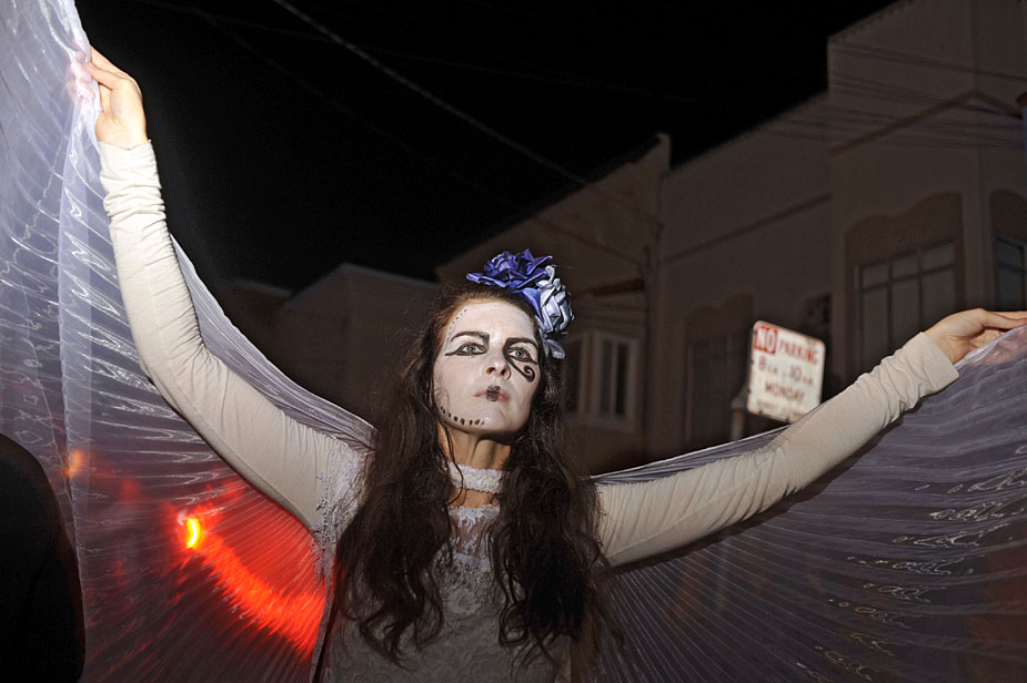 11月2日,美國舊金山居民扮成鬼怪模樣慶!巴鲮`節(jié)”!巴鲮`節(jié)”是拉美地區(qū)的傳統(tǒng)節(jié)日,類似于中國的清明節(jié)。來源:中國新聞網(wǎng)