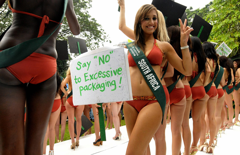 2009世界綠色環(huán)保大使小姐決賽在菲律賓進(jìn)行,來自世界各地的90名佳麗參與角逐。世界綠色環(huán)保大使(地球小姐)評(píng)選,是全世界唯一以“綠色環(huán)!睘橹黝}注冊的國際頂級(jí)權(quán)威大賽,由菲律賓總統(tǒng)阿羅約創(chuàng)始。圖片來源:中國新聞網(wǎng)