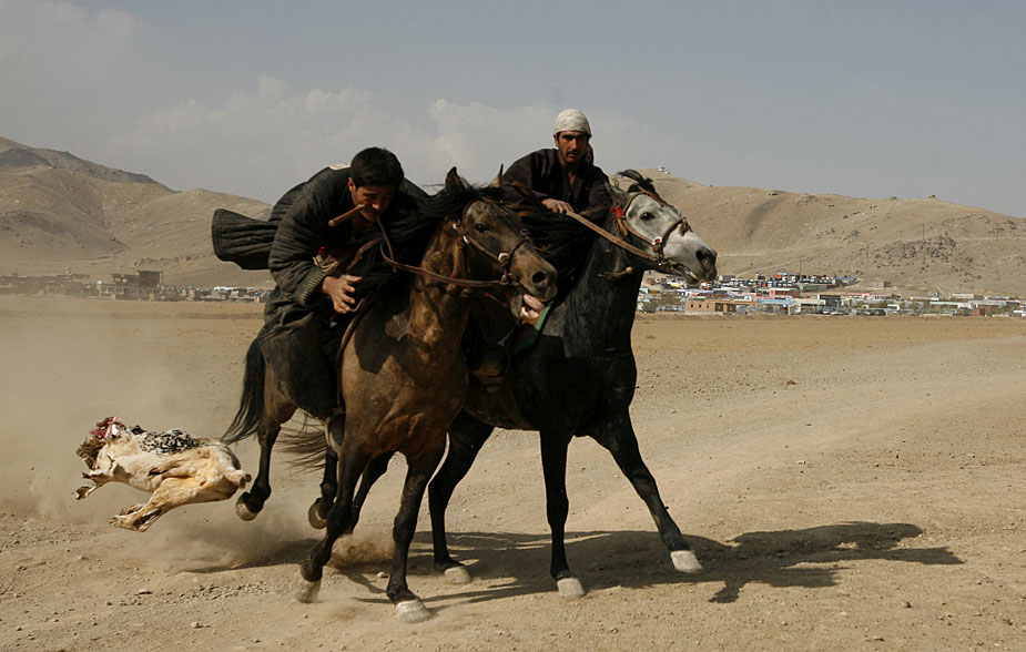 11月6日,阿富汗首都喀布爾舉行傳統(tǒng)的“馬背叼羊”比賽。圖片來源:中國新聞網(wǎng)