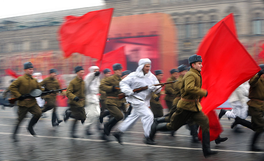 11月7日,俄羅斯士兵身穿二戰(zhàn)時(shí)期的軍服在莫斯科紅場(chǎng)舉行閱兵閱兵式紀(jì)念1941年紅場(chǎng)閱兵。圖片來(lái)源:中國(guó)新聞網(wǎng)
