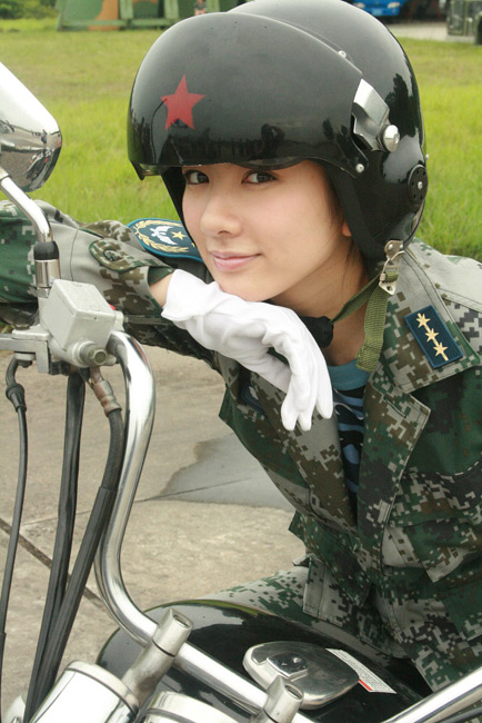11月12日,北京,為配合慶祝人民空軍成立60周年活動,由八一電影制片廠著名導演寧海強擔綱執(zhí)導,黃奕主演的軍事動作大片電影《殲十出擊》即將上映。在這部大量表現(xiàn)戰(zhàn)斗機空戰(zhàn)場面的軍事題材電影里,黃奕在片中的主要工作是檢查維護殲十戰(zhàn)斗機的機械運轉(zhuǎn),保證安全飛行,就是通常所說的機務(wù)工作。穿上正統(tǒng)的空軍女上尉軍服,肩扛一杠三星,英姿颯爽的黃奕顯得無比自豪。