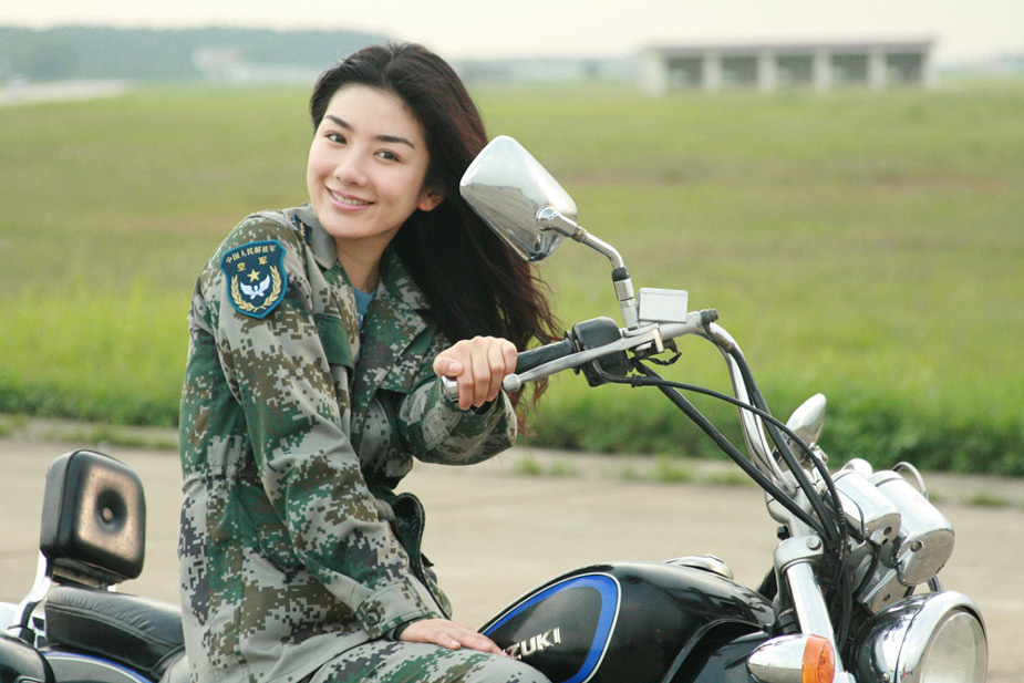 11月12日,北京,為配合慶祝人民空軍成立60周年活動,由八一電影制片廠著名導(dǎo)演寧海強擔(dān)綱執(zhí)導(dǎo),黃奕主演的軍事動作大片電影《殲十出擊》即將上映。在這部大量表現(xiàn)戰(zhàn)斗機空戰(zhàn)場面的軍事題材電影里,黃奕在片中的主要工作是檢查維護殲十戰(zhàn)斗機的機械運轉(zhuǎn),保證安全飛行,就是通常所說的機務(wù)工作。穿上正統(tǒng)的空軍女上尉軍服,肩扛一杠三星,英姿颯爽的黃奕顯得無比自豪。