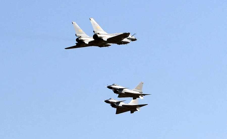 慶祝中國人民解放軍空軍成立60周年飛行表演,11月15日上午在北京沙河機(jī)場舉行。表演按八一飛行表演隊4架殲-10飛機(jī)表演12個動作和6架殲-7GB飛機(jī)表演15個動作,分四機(jī)對頭交叉、四機(jī)菱形隊大坡度盤旋、單機(jī)小速度平飛等27個動作,其中四機(jī)對頭交叉動作是這次表演中技術(shù)難度較大的動作之一,這是國產(chǎn)三代飛機(jī)和國產(chǎn)二代飛機(jī)首次同場競技表演。圖為殲10戰(zhàn)機(jī)編隊在進(jìn)行特技表演。王穎 攝