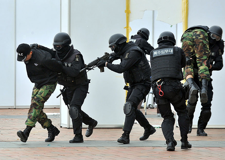 11月16日,韓國在距首爾以北30公里處舉行了由特種兵參與的反恐演習(xí)。圖片來源:中國新聞網(wǎng)